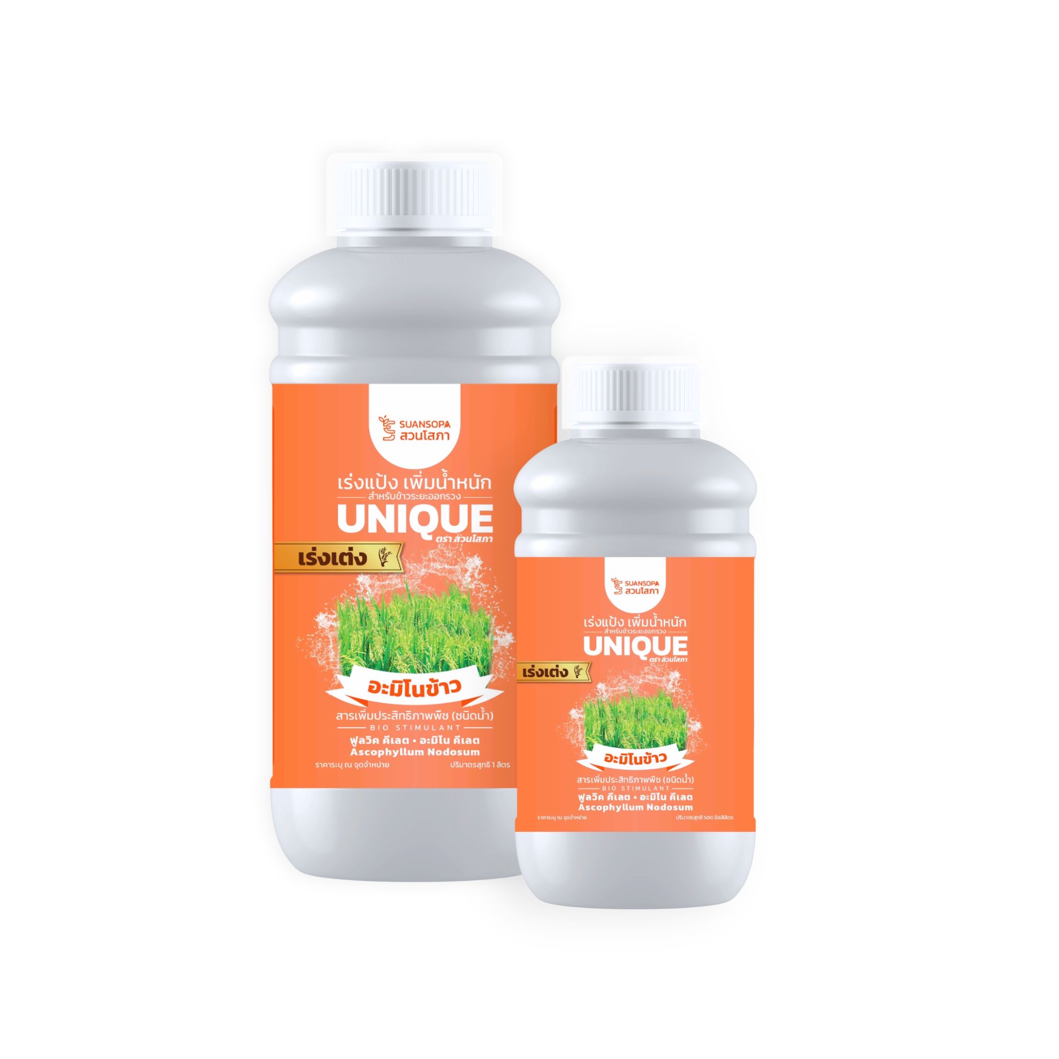 - ผสานพลังอะมิโนคีเลต – ช่วยดูดซึมธาตุอาหารหลักเต็มที่ ลดการสูญเสีย เสริมความแข็งแรง ลดความเครียด ป้องกันเมล็ดลีบ รวงเล็ก